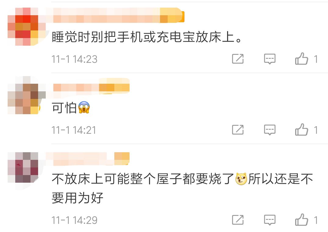 以后睡觉时不能把充电宝放在床上充电,安全为上!