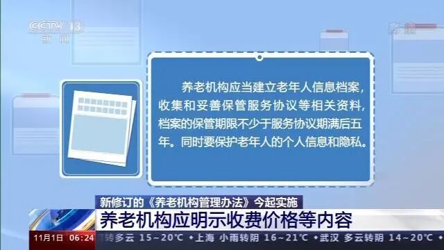 对于养老服务提供过程中容易出现纠纷环节,比如服务质量、价格、事故责任等方面,新修订的《养老机构管理办法》都做了明确的规定。