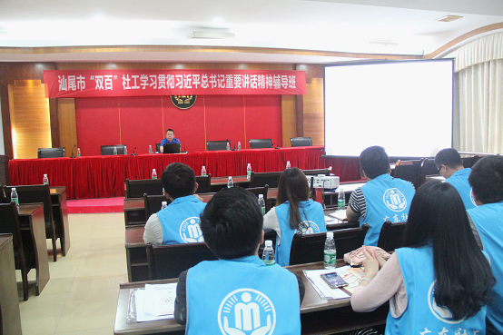 为深入学习贯彻习近平总书记参加十三届全国人大一次会议广东代表团审议时的重要讲话精神,5月4日,汕尾市民政局举办全市“双百”社工学习习近平总书记重要讲话精神暨民政业务政策培训班,培训班邀请了市委理论宣讲团成员作学习习近平总书记重要讲话精神辅导讲座,市民政局业务科室负责同志进行了优抚安置、社会福利、低保救助等业务政策讲解和实操经验分享。