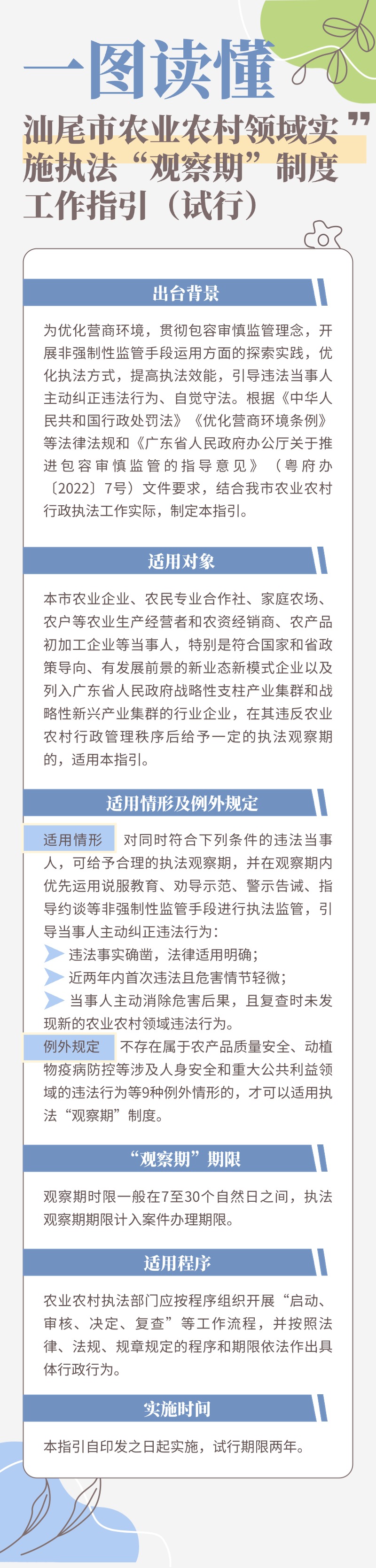 一图读懂《汕尾市农业农村领域实施执法“观察期”制度工作指引(试行)》