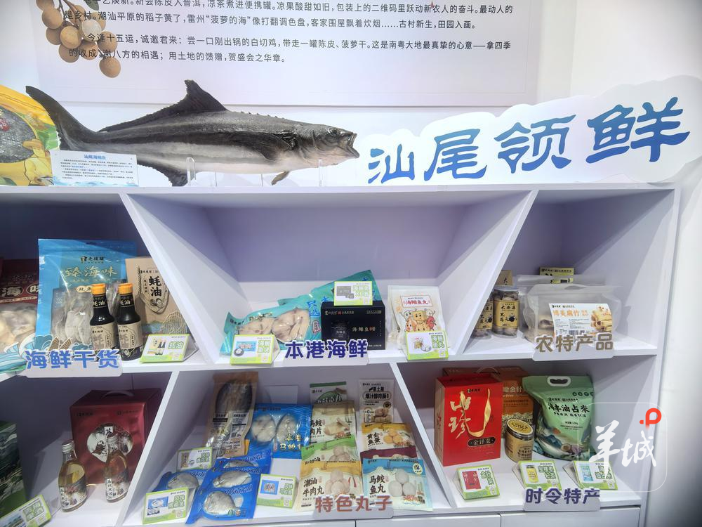 羊城晚报记者在“农立方”看到,汕尾还带来了各种深加工的海鲡鱼块、海鲡鱼酱、虾干、马鲛肉片、黄金鱼蛋、淡菜干……汕尾展示了从“海洋牧场到餐桌”的全产业链新产品。