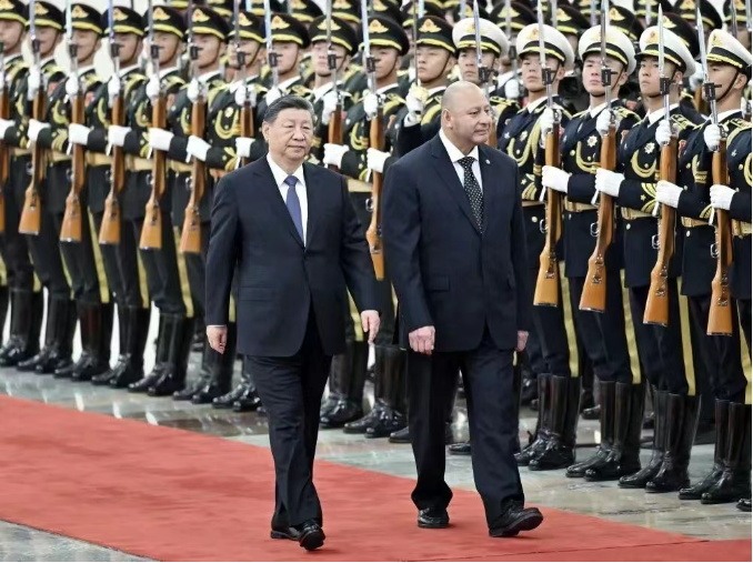 11月25日上午,国家主席习近平在北京人民大会堂会见来华进行国事访问的汤加国王图普六世。这是会见前,习近平在人民大会堂北大厅为图普六世举行欢迎仪式。新华社记者 丁海涛 摄