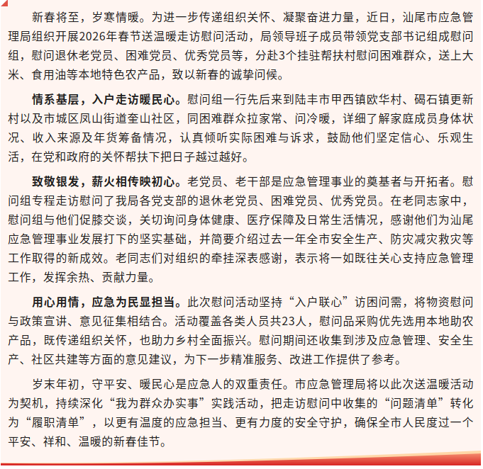汕尾市应急管理局开展2026年春节送温暖走访慰问活动