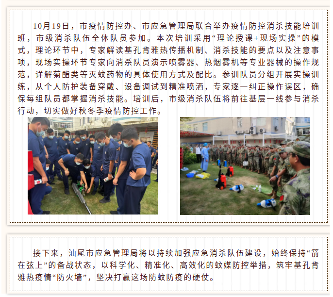 汕尾市应急管理局牵头组建市级消杀队伍 全力备战基孔肯雅热疫情防控