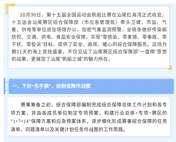 共筑保障防线,护航激情盛会——十五运会汕尾赛区综合保障部交出圆满答卷