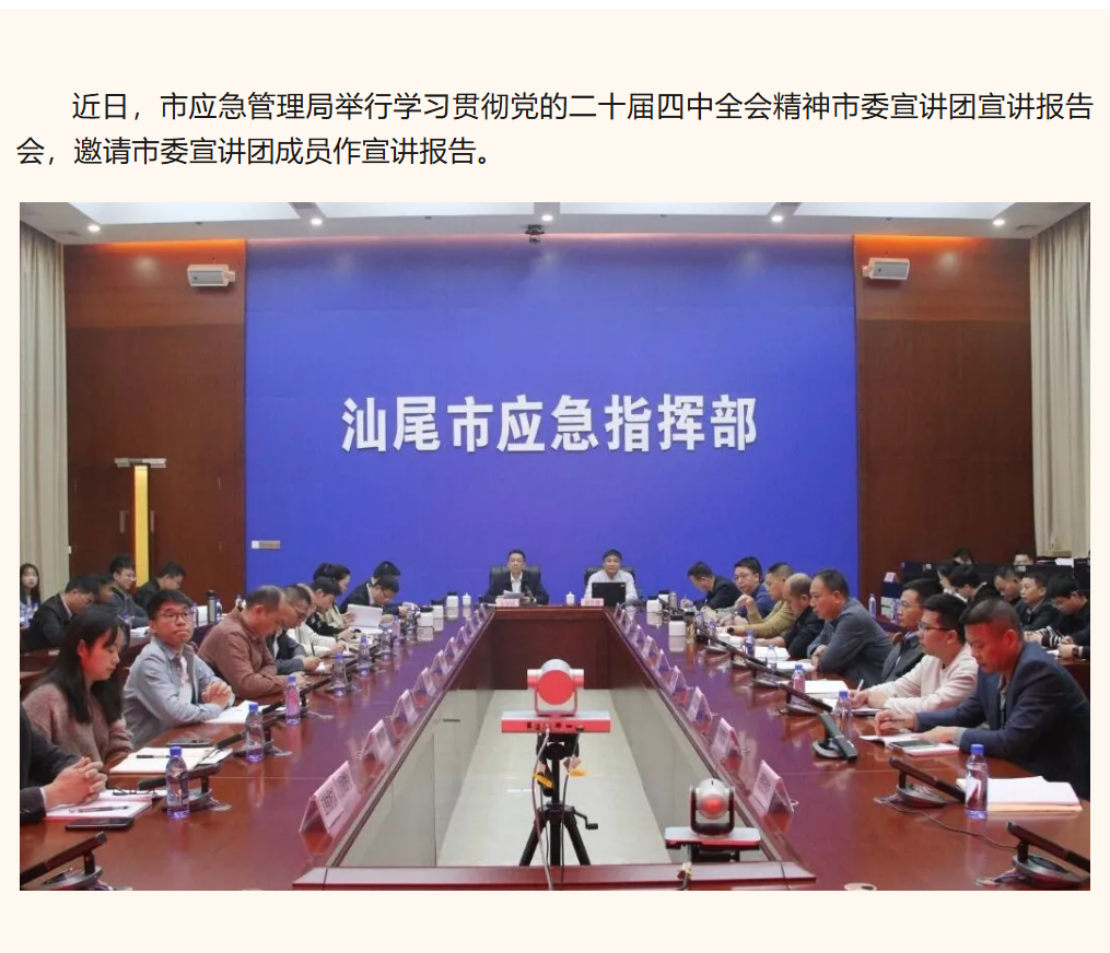 市应急管理局举行学习贯彻党的二十届四中全会精神市委宣讲团宣讲报告会 以高水平安全保障高质量发展