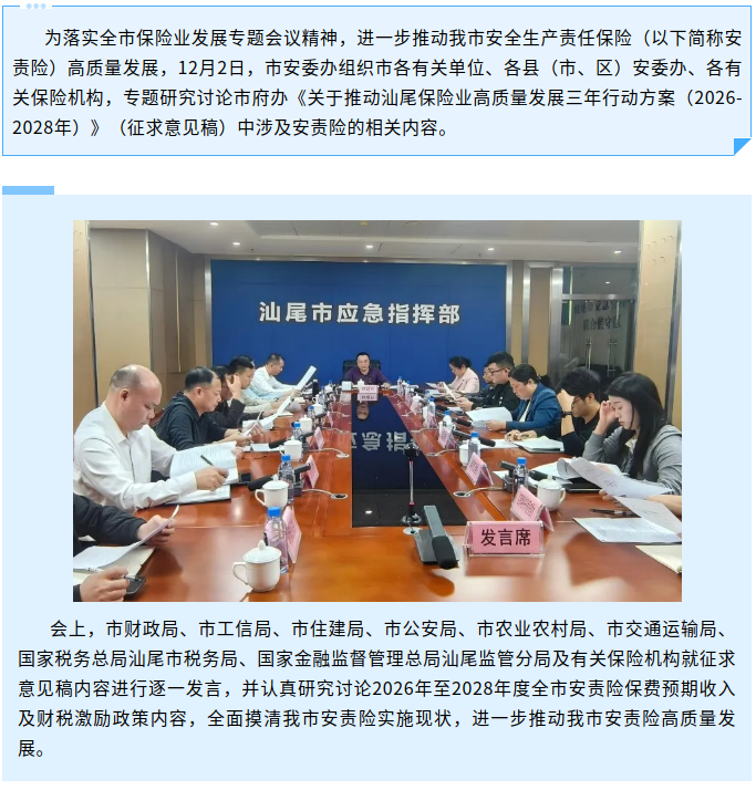 市安委办召开会议落实保险业发展专题会议精神 进一步推动我市安责险高质量发展