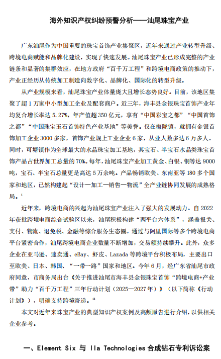 2025年汕尾市珠宝产业海外知识产权纠纷预警分析