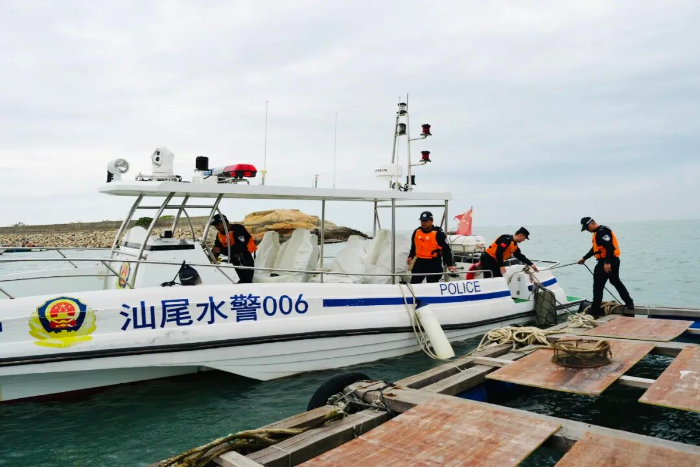 在基地码头,装备保障工作同样一丝不苟。出勤前,后勤保障人员会对每艘快艇进行全面检查,确保性能良好,艇上配备的救生衣、救生圈、救生杆等救援装备也按规定配齐配全,摆放有序。“装备不出问题,同志们在海上才能安心执勤,”负责后勤保障的民警杨万钢说,“这是水上安保的底线。”为了提升实战能力,汕尾公安在赛前组织了多次专项培训,内容包括船艇驾驶、水域管控、海上执勤规范、救援救生及应急处置等,并邀请了经验丰富的广州市公安局专家前来授课,全面提升海上执勤人员的水上技能实战水平。