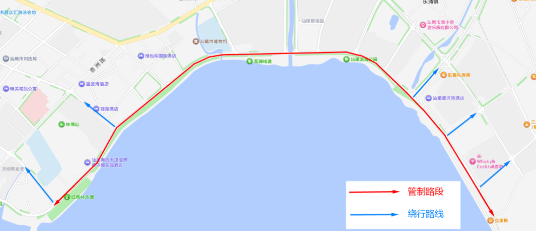 2025年12月14日,在汕尾市城区举办2025广东万里碧道汕尾品清湖铁人三项赛,按照赛事组委会安排,为满足赛程需求,确保赛事期间道路交通安全,根据《中华人民共和国道路交通安全法》第三十九条的有关规定,我支队决定对赛事期间周边路段实施临时交通管制。现通告如下: