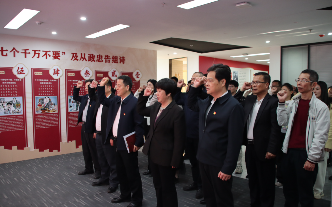 活动中,全体干部职工在讲解员引导下,依次参观了“百年风华”“海陆廉韵”“警钟长鸣”“固本清源”四个主题展厅。大家驻足凝视详实图文、视频资料、典型案例,沉浸式体验模拟情景,重温习近平总书记关于加强党的作风建设的重要论述,深刻认识党风廉政建设和反腐败斗争取得的显著成效,学习古今勤廉楷模的先进事迹,用近年来查处的腐败案例开展警示教育,在正反对比中受警醒、明底线、知敬畏,切实增强廉洁从审的思想自觉。在鲜红党旗前,全体党员庄严宣誓,重温入党誓词,并郑重签署廉政承诺书,以书面形式立下廉洁誓言,承诺严守纪律规矩、坚守廉洁底线,以实际行动践行廉洁从审要求。