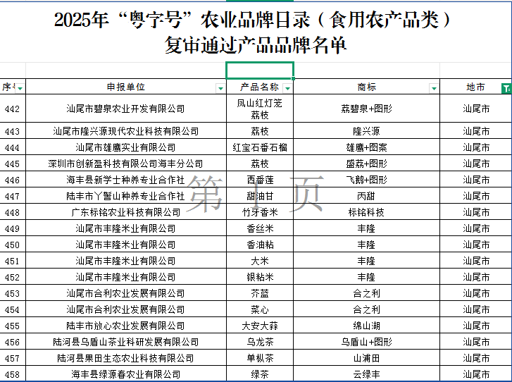 2025年“粤字号”农业品牌目录(食用农产品类)公布
