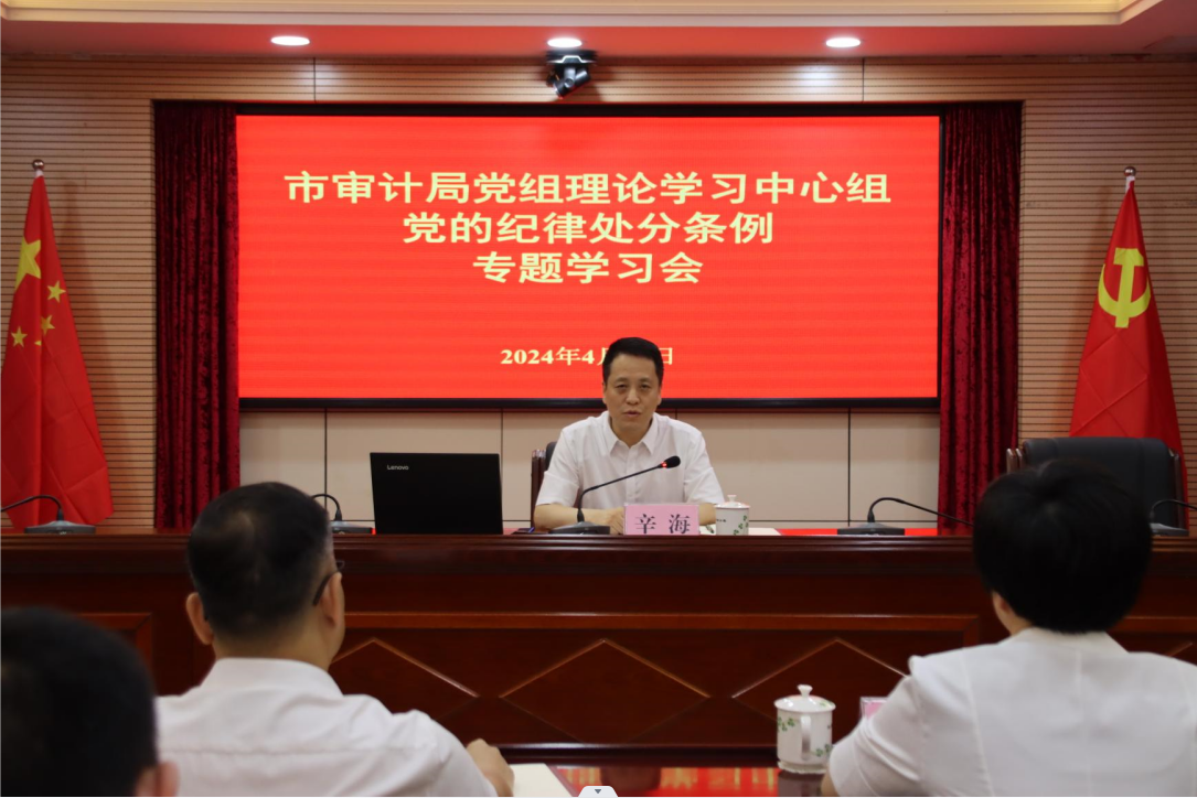4月26日下午,市审计局召开党组理论学习中心组党纪学习教育专题学习会,认真学习《中国共产党纪律处分条例》。局党组书记、局长辛海从修订情况、重要意义、内涵要义、贯彻执行四个方面,对《条例》进行了系统全面深入细致的解读,并结合审计工作实际,对如何落实《条例》加强审计监督提出了针对性意见,为全体审计干部作了一堂深刻的专题辅导课。专题辅导内容丰富、阐释精准,对增强审计干部纪法意识、提升履职能力具有重要指导作用。