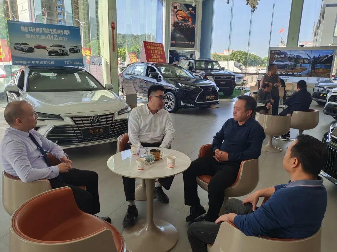 调研组先后走访了汕尾佳艺汽车销售服务有限公司、汕尾中溢丰田汽车销售服务有限公司、汕尾虹运汽车销售服务有限公司、汕尾锦虹汽车销售服务有限公司、汕尾骏荣汽车销售服务有限公司等重点新车销售企业,通过实地察看和座谈交流相结合的方式,全面了解企业经营现状,精准对接企业诉求,推动解决实际问题。
