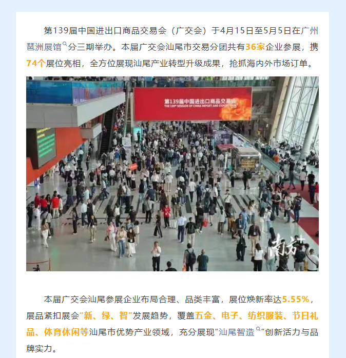 汕尾36家企业亮相第139届广交会