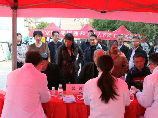 活动现场,医务人员为群众提供测量血压、血糖等基础健康检查服务,并根据患者的实际情况提出专业的诊断和治疗建议。现场还设置了爱国卫生、防蚊灭蚊、传染病防控、健康教育等知识宣传区。志愿者向群众发放健康教育宣传折页、宣传用品,并积极科普日常健康知识,提高群众自我保健意识。