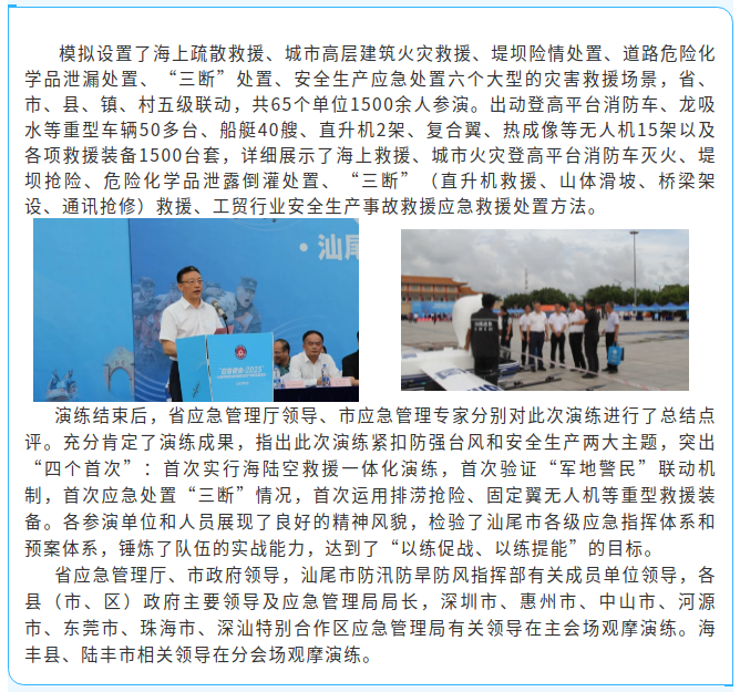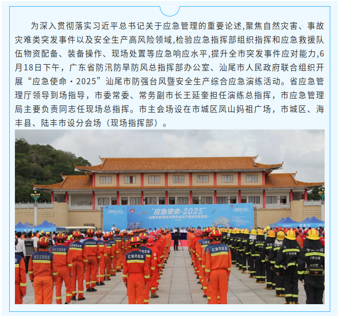 广东省防汛防旱防风总指挥部办公室、汕尾市人民政府联合组织开展“应急使命·2025”汕尾市防强台风暨安全生产综合应急演练活动
