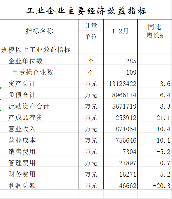 2026年1—2月工业企业主要经济效益指标