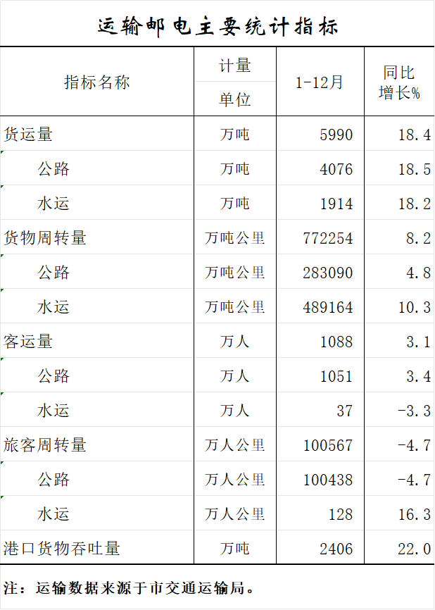 2025年1—12月运输邮电主要统计指标
