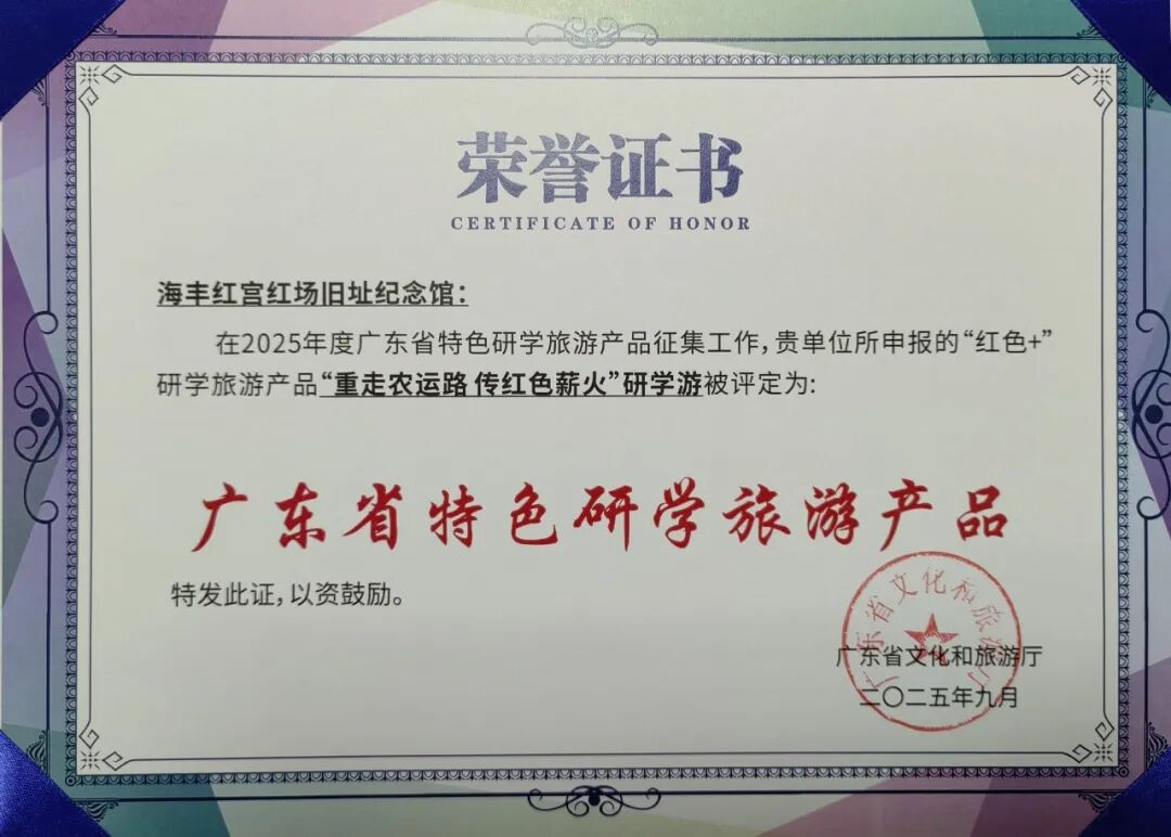 9月13日,在2025广东国际旅游产业博览会举办期间,广东省研学旅游发展交流会暨广东省特色研学旅游产品推介会在广交会展馆举行,会上正式推出2025年度广东省特色研学旅游产品,汕尾市海丰红宫红场旧址纪念馆申报的“红色+”研学旅游产品《“重走农运路 传红色薪火”研学游》成功入选。