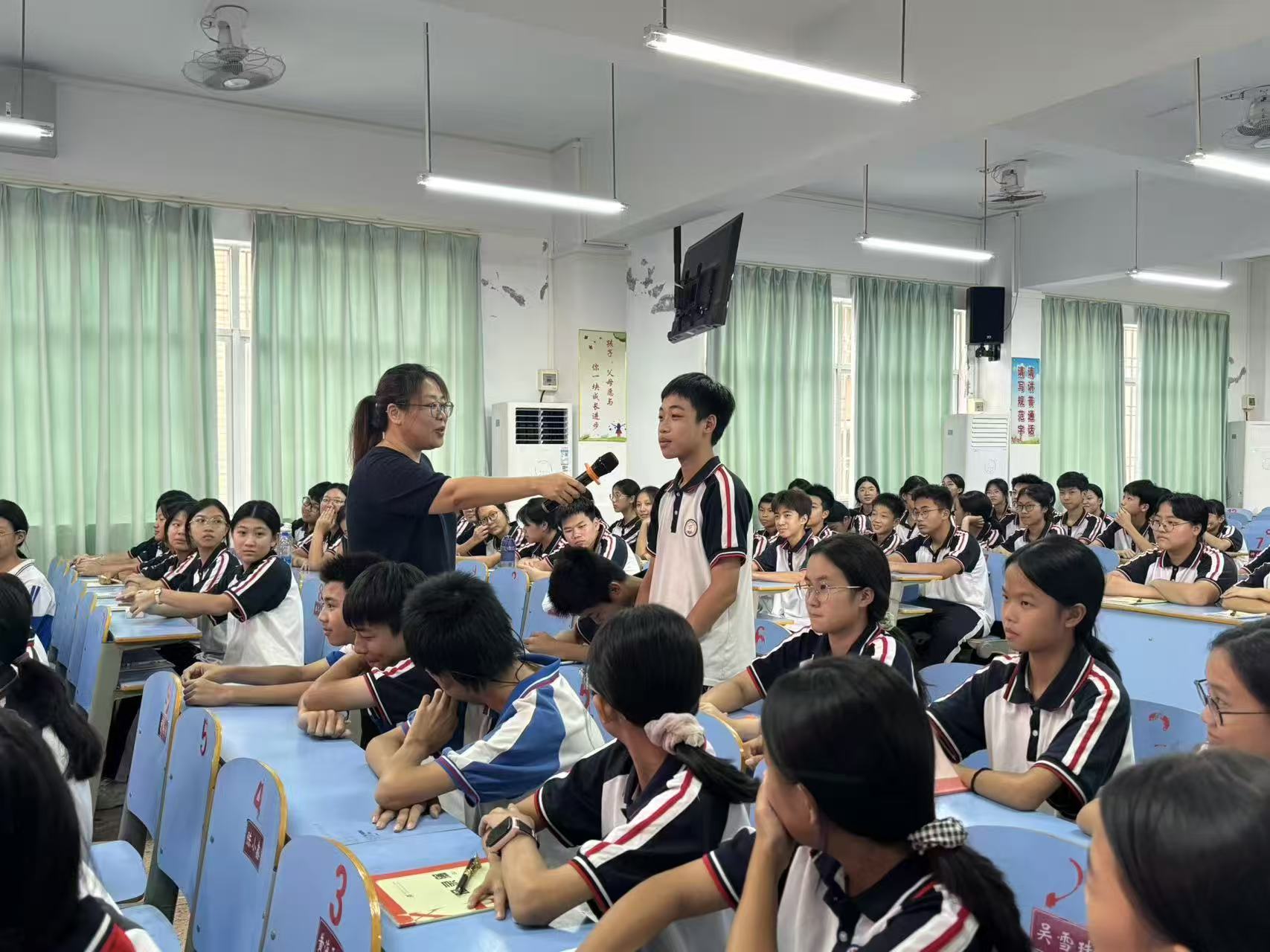 讲座中,樊老师通过互动问答等生动有趣的方式与同学们进行授课,整个授课过程互动频繁、气氛热烈,让学生们清楚地了解青春期人体在生理和心理上出现的各种变化的相关知识,提醒同学们要爱惜自己的身体,珍惜生命。