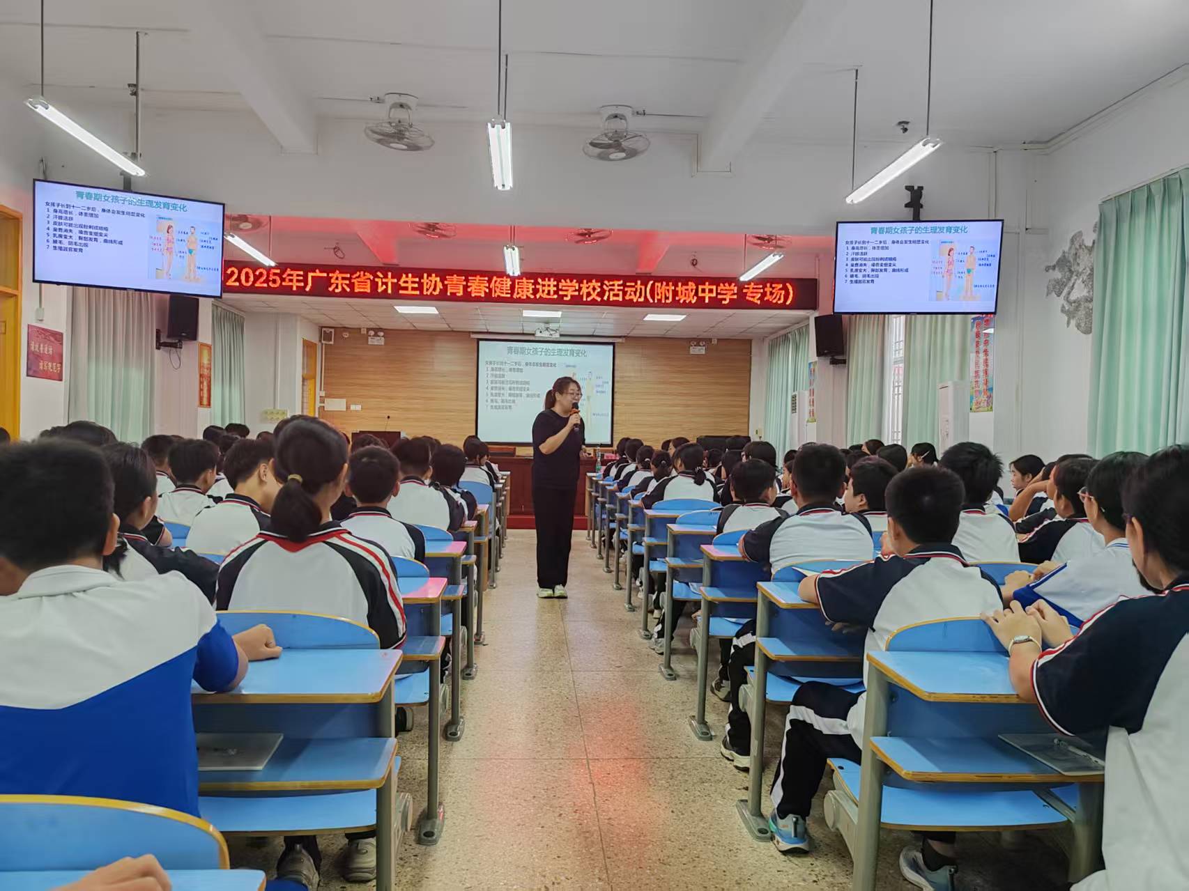 为让学生们适应青春期成长中的生理及心理变化,以科学、健康的态度接纳青春期。按照省卫生健康委有关健康科普进万家活动部署要求,10月13日,由广东省计生协主办的“魅力青春、健康护航”——青春健康教育“四进”活动走进海丰县附城中学,开展青春期健康教育讲座。