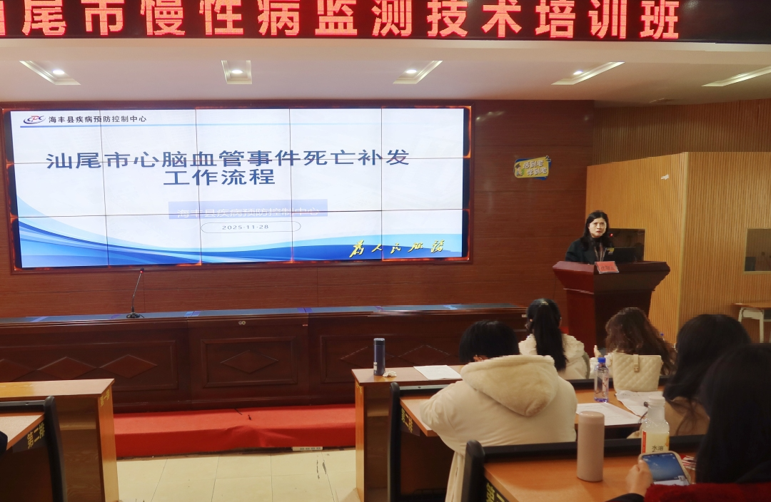 为进一步提升我市心脑血管事件及伤害监测工作质量,2025年11月28日,汕尾市疾病预防控制中心组织举办了全市慢性病监测技术培训班。市、县(区)疾控中心及相关医疗机构慢性病监测业务骨干参加培训。